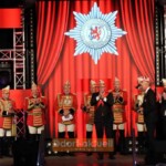 Feierlich wurde es auf der Bühne des Henkelsaals, als die neuen Mitglieder der Prinzengarde aufgenommen wurden. Mit Philipp Klopft, Josef Hinkel junior, Oskar Maré und Jakob Hautzer wechselten gleich vier junge Männer von der Kindergarde zu den Erwachsenen. Kommandant Marco Bätzel zeigte sich sehr stolz auf den Gardenachwuchs. Drei weitere Herren, die in Düsseldorf keine Unbekannten sind, wurden ebenfalls mit den Zeichen der Rot-Weissen-Prinzengarde geschmückt: Journalist Andreas Krüger, Schausteller Oliver Wilmering und von den Sebastianer Schützen von 1316 Detlef Hütten. Der vierte im Bunde, Daniel Kreutzer, war wegen eines DEG-Spiels entschuldigt. Bevor sie vom Kommandanten mit einem Schwertstreich aufgenommen wurden, sprachen sie gemeinsam den Fahneneid der Prinzengarde der Stadt Düsseldorf.