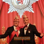 Die Prinzengarde der Stadt Düsseldorf Leibgarde des Prinzen hatte dazu am Freitagabend (5.11.) in den Henkelsaal eingeladen. Die Rot-Weisse-Adjutantur, Rolf Förster und Thomas Stelzmann, legten dem Prinzen in spe erst seine Schärpe an (die noch zur rechten Seite hin getragen wird), dann gab es das Prinzen-Lätzchen (damit das Ornat beim Essen nicht leidet), es folgte die Prinzenkappe (mit passender Aufbewahrungstasche) und schließlich das Prinzensilber. Das ist diesmal etwas ganz besonderes, da beide Jahreszahlen, 2021 und 2022, eingraviert sind. Das gab es noch nie, weil eigentlich nach einer Session Schluss ist.