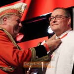 Die Rot-Weisse-Garde feierte am Freitagabend aber nicht nur ihren zukünftigen Prinzen. Viele Jubilare waren zu ehren. Karl Eitel Emil Müller-Schoenfeld wurde mit stehenden Applaus auf die Bühne geleitet, wo „Charly“ die Ehrennadel mit Rubin für 5 x 11 Jahre Mitgliedschaft in der Prinzengarde erhielt. Die Ehrungen nahm Präsident Dirk Kemmer vor – bis auf eine Ausnahme. Kommandant Marco Bätzel ehrte den Präsidenten für 1 x 11 Jahre bei Rot-Weiss.