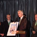 Denn sein Vorstand führte offenbar mehr im Schilde. Immer wieder verließen die Herren geheimnisvoll den Saal und warfen sich bedeutungsvolle Blicke zu. Als schließlich ein schwarz gekleideter Mann mit Weissfrack-Kappe und Mundschutz auf die Bühne trat, brauchte es einen Moment, um zu erkennen, wer das war. Der Literat und enger Freund der Weissfräcke Jürgen Hilger war gekommen und hatte auf eine Melodie der Bläck Fööss ein Lied geschrieben, das nicht nur dem Jubilar ans Herz ging. „Mer hant dir ganz vell zo verdanke – du mäcks dat wirklich, richtisch joot – un ohne dich, do währ’mer ärmer – dröm trekke mir für dich hütt onsre jecke Hoot“, heißt es im Refrain.