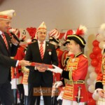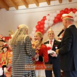 Dass das „eigentlich“ auch Ausnahmen kennt, zeigte eine Ehrung, die Dirk Kemmer nur sehr selten vornimmt. Petra Hautzer, die sich seit Jahren als Betreuerin der Kindergarde engagiert, wurde mit dem Verdienstorden der Garde ausgezeichnet. 365-Tage im Jahr sei sie für den Nachwuchs da, betonte der Präsident und deshalb sei diese Ehrung mehr als überfällig. Aber nicht nur Petra Hautzer ist bei Rot-Weiss aktiv, auch der Ehemann und die beiden Söhne sind aktive Gardisten. Viele Familien bringen sich bei der Prinzengarde ein. Ein Beispiel von vielen: Ben Eyckeler war Kinderprinz, Vater Christian Eyckeler ist Betreuungsoffizier – scherzhaft „Leitwolf“ vom Präsidenten genannt – der Kindergarde, Sandra Eyckeler trainiert die Kindertanzgarde. Zahlreiche Gardisten blicken stolz auf den eigenen Nachwuchs in der Kindergarde.