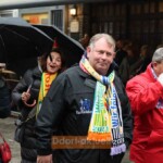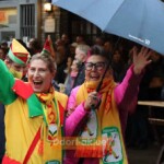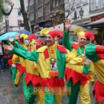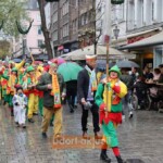 Nach einer nur kurzen Aufwärmpause ging der Einsatz für die Kinder-Hoppediz-Garde und die großen Kollegen weiter. Denn zum Gründungsfest der Wache galt es traditionell einen ganz wichtigen Orden zu verleihen. So zog die fast 50 Personen zählende Gruppe zur Begeisterung der Altstadtbesucher von der Bolker Straße zum Hoppeditz-Plätzchen hinter dem Haus des Karnevals. Nach Grußworten von Bürgermeister Josef Hinkel kletterte eine Jung-Hoppedizin am Hoppeditz-Denkmal hoch und der Orden wurde mit einem dreifachen Helau verliehen. Gestaltet wurde der Orden – wie in den vergangenen Jahren – von Hoppediz-Wachen-Präsident Clemens Kaiser.