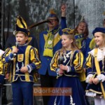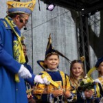 Nachdem die Angersternchen ihren Showtanz inklusvie Zugabe auf der Bühne präsentiert hatten, war der große Moment gekommen, an dem das Kinderprinzenpaar das neue Sessionslied vorstellte. Mit „Wir woll’n Kamelle“ rockten die Youngster den Platz und dem Titel entsprechend zeigten sie anschließend, dass das Kamellewerfen schon gut klappt.