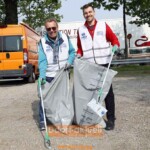 Dort genossen sie gemeinsam eine leckere Kartoffelsuppe, die Dauser für sie gekocht hatte. Dr. Kapustina erklärte, dass die ukrainischen Teilnehmer*innen sich aus Respekt gegenüber der Gastfreundschaft der Düsseldorfer*innen an der Aktion beteiligten, ein kleiner Dank für die Aufnahme. Ähnliche Intention hatte eine zweite große ukrainische Gruppe an den Oberkasseler Rheinwiesen. Sie sammelten Müll und hielten an der Ausgabestelle für alle Teilnehmer*innen Getränke und Leckereien bereit.