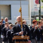 Bereits am Freitag (6.5.) hatten sich die Garather bei der Frühlingsparty im Festzelt „warm“ gefeiert – was auch nach Corona sehr gut gelang, man hat nichts verlernt. Eine kurze kalte dusche gab es am Samstag bei der Abholung des ersten Chef und des Regimentskönigs, als der Himmel plötzlich seine Schleusen öffnete. Aber nach einigen Minuten war das wieder vorbei und da sich die Schützen schnell untergestellt hatten, konnte es leidlich trocken zur Jungschützen-Show gehen. Der Sonntag stand nicht nur im Zeichen von Festzug und Parade. Denn am Abend gab es die Proklamation des neuen Schützenkönigs Andreas Hagemes, dessen Krönung für Dienstagabend beim Krönungsball. Eine Besonderheit des Düsseldorfer Südens steht für Montagabend auf dem Programm – der Klompenball, bei dem das neue Klompenkönigspaar gekrönt wird.
