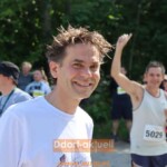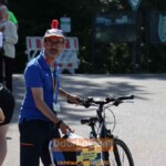 Daniel Kasimirowicz war als Führungs-Radler beim 10-Kilomter-Lauf in Aktion und bahnte mit Trillerpfeife den Weg für den schnellsten Läufer. Das war von Beginn an Merlin Döner, vom Team TriForce Vital, der nach 36:01 Minuten das Ziel erreicht. Den zweiten und dritten Platz sicherten sich zwei Läufer des Triathlon Team Düsseldorf. Michiel an Bellen lief auf Platz zwei mit 36:44 Minuten und Ben Weiß auf drei mit 37:02.