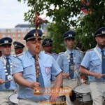 Für die St. Sebastianus Schützen in Oberkassel war die Vorbereitung auf das erste Schützenfest nach Corona besonders anspruchsvoll. Denn eigentlich sollte an „ihrem“ Schützenfestsonntag auch der Rosenmontagszug nachgeholt werden. Besonders schwierig war dabei die Situation für den Regimentskönig Jörg Klünder, aktives Mitglied in der Prinzengarde Blau-Weiss. An zwei Orten gleichzeitig feiern wäre schwierig. Doch die Schützen zeigten sich kreativ und zogen Festzug und Parade auf den Christi Himmelfahrtstag (26.5.) vor. Karneval wurde dann doch abgesagt, aber der Start ins Schützenfest am Donnerstag blieb und so zogen die Schützen begleitet von viel Musik durch Oberkassel und hielten die Parade vor der St. Antonius Kirche ab.