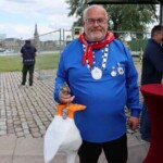 Denn auch ohne Pferde versuchten die Teilnehmer*innen der Gummigans den Kopf abzureißen. Jörg Klünder, am Freitag abgekrönter Regimentskönig, hatte den aus Westfalen stammenden Brauch nach Düsseldorf gebracht. Er platzierte die Ganz am Ast eines Baumes, so dass sie etwa zwei Meter über dem Boden baumelte. Schon lange hat man sich bei den Gänsereitern davon verabschiedet eine echte Gans zu köpfen und sie anschließend zu verspeisen. Der Kopf der Gummigans war mit zahlreichen Gummibändern am Rumpf befestigt und es verlangte viel Kraft, diese Bänder nach und nach zum Reißen zu bringen.