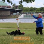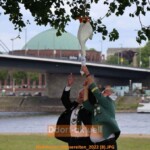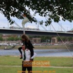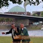 Der St. Sebastianus Schützenverein Oberkassel feierte seit Donnerstag (26.5.) sein Schützenfest, bei dem der Festzug und die Parade ausnahmsweise bereits zur Eröffnung stattfanden. Bericht und Fotos von Ddorf-aktuell finden sie hier. Bereits zum dritten mal stand das „Gänsereiten“ auf dem Programm, zu den sich am Samstagnachmittag die Gänsereiten auf den Rheinwiesen gleich neben dem Festzelt Oberkassel treffen wollten. Doch das Wetter hatte die Wiesen zu sehr aufgeweicht, was für die Tiere zu gefährlich geworden wäre und den Schützen eine Strafzahlen eingebracht hätte, wenn die Grasnarbe zerstört worden wäre. Daher improvisierte man und es wurde ein Gänsereiten in besonderer Variante.