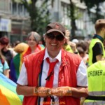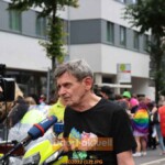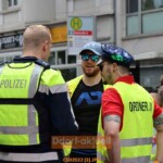 Kalle Wahle von rund 30 Köpfe starken Orga-Team, freute sich über den Zulauf, auch wenn durch den Anschlag in Oslo am Freitgabend ein Schatten auf der Veranstaltung lag. Immer wieder sah man kleine schwarze Schleifen der Anteilnahme auf den bunten Regenbogenzeichen. Die Eröffnung durch Bürgermeisterin Clara Gerlach musste in diesmal ausfallen, da sie sich verspätete und die Polizei auf einen pünktlichen Start drängte. Denn bis die rund 7000 Demonstrierenden am Johannes-Rau-Platz angekommen waren, war es für viele Autofahrer*innen in der Innenstadt eine Geduldsprobe. Da kurz zuvor eine weitere Demonstration „Defend Kurdistan“ mit ebenfalls Tausenden Teilnehmer*innen vom Graf-Adolf-Platz aus gezogen war, dauerten die Staus lange an.