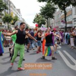 Neben Gruppierungen wie der KG Regenbogen, der AWO, Diversitas, den Tänzer*innen von ConTAKT, dem Jugendzentrum PULS und Vertretern von Grünen, SPD, Linken und Die Partei waren diesmal auch einige Firmen mit Abordnungen dabei. Eine große Gruppe stellte die Firma Henkel, die DEI (Diversity, Equity and Inclusion) in ihrer Unternehmenkultur verankert hat und seit ein eigenes globales Diversity-Team eingerichtet hat. Wie eine Henkel-Teilnehmer*in berichtete, wird nicht nur die Regenbogenfahne gehisst, Diversity werde auch im Firmenalltag gelebt.