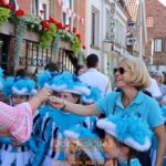 Der Name des neuen Zugs „Plektrudis“ mag etwas schwer über die Lippen gehen, aber er geht auf die Frau zurück, die mit ihrem Mann, den fränkischen Hausmeier Pippin, dem Mönch Suitbertus um 700 die Rheininsel für eine Klostergründung schenkte. Das waren die Ursprünge von Kaiserswerth. Mittlerweile zählen zehn Frauen zum Zug der Plektrudis und ein Ehrenmitglied haben die Damen auch schon: Die 91-jährige Regina Schäfer, die es sich nicht nehmen ließ am Samstag Festzug und Parade mit ihrer Kamera festzuhalten. Aber auch die Suitbertus Kompanie ist offen für Frauen, was Lena Schmitz motivierte erstes weibliches Mitglied zu werden. Über zwanzig Mitglieder im Alter zwischen 18 und 44 gehören zur Kompanie.