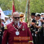 Allen Majestäten war anzusehen, wie sehr sie sich darüber freuten in den Kutschen durch Kaiserswerth zu fahren und den zahlreichen Zuschauern am Straßenrand zuzuwinken. Bei strahlenden Sonnenschein wurde dann die Parade vor dem Rathaus gehalten. Das fand allerdings als Neuerung im Ablauf alles bereits am Schützenfestsamstag statt. Regimentskönig Gregor Henrichs hatte sich dafür eingesetzt den Ablauf des Schützenfestes neu zu ordnen. Wie gewohnt war eine Woche vorher die goldene Mösch durch den Ort getragen worden. Die Eröffnung des Schützenfestes wurde aber am Freitagabend gefeiert, mit anschließender Party im Zelt. Der Samstag stand dann nach Frühschoppen mit Blasmusik im Zeichen des großen Festzugs mit Parade, bevor die Kleinschützen und Bürger*innen ihr Geschick am Schießstand beweisen konnten. Neuer Kleinschützenkönig ist Adrian Barsch. Beim Festabend wurden am Samstag die Ehrungen vorgenommen und der Bürgerkönig gekrönt.