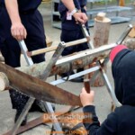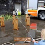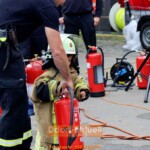 Aus Sperrholz wurden Feuerwehrautos ausgesägt oder Holzscheiben mit großen Sägen abgetrennt. Dort zeigten die Einsatzkräfte auch, wie sie beispielsweise nach einem Sturm Bäume oder andere Lasten mit hydraulischen Hebern anheben, um Verletzte zu retten. Wer mit einem Feuerlöscher ein echtes Feuer bekämpfen wollte, musste Schutzkleidung anlegen – die war schwer, aber die jungen Feuerwehrleute stolz, wenn die Flammen erloschen.