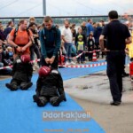 Besonders für Familien war die Feuerwehr am Sonntag das Ereignis. Schon an den zahlreich geparkten Fahrrädern und Lastenrädern am Mannesmannufer konnte man das große Interesse ablesen. Viele Eltern oder Großeltern erkundeten mit den Kindern die zahlreichen Stände. Die Feuerwehr hatte sich unendlich viel Mühe gegeben besonders für die jungen Gäste schöne Aktionen zu präsentieren, bei denen sie selber mitmachen konnten. So ließ der Reptiliendienst die Kinder mit Originalwerkzeug nach Schlangen in einem Terrarium angeln. Wer erfolgreich war, durfte die Schlange behalten. Die war ungiftig und offenbar sehr lecker – und kam von einem Süßwarenhersteller.