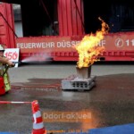 Die Düsseldorfer Feuerwehr gibt es seit 150 Jahren und dieses Jubiläum wollten sehr viele Düsseldorfer*innen mitfeiern. Am Sonntag (10.7.) waren große und kleine Fans zum „Tag der Feuerwehr“ am Unteren Rheinwerft zwischen Kasematten und der Apollowiese eingeladen und bereits vor 11 Uhr strömten die Besucher*innen. Auf einer Länge von 300 Metern hatten die Einsatzkräfte ihr gesamtes Repertoire aufgebaut: Feuerwehrtaucher, Höhenretter, Feuerwehrboote, Reptiliendienst sowie das gesamte technische Equipment vom Rettungswagen bis zum Feuerwehrkran waren vor Ort.