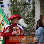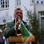 In den Straßen von Angermund erkennt man sofort, dass Schützenfest gefeiert wird. Am Kreisverkehr an der Graf-Engelbert-Straße ist das Stadttor aufgebaut, Wimpel schmücken die Straßen und Birkenzweige den Straßenrand. Wer die optischen Zeichen nicht wahrgenommen hat, hörte spätestens am Samstagnachmittag (10.9.) die Feierlichkeiten. Denn nach dem Kaffeetrinken für Jedermann hallten die Schüsse der Böllerschützen durch den Ort und die Kirche St. Agnes stimmte Festgeläut an. Mit dem Aufzug der Stadttorwache wurde die goldenen Mösch durch Angermund getragen und die Musikgruppen gaben ein Platzkonzert.