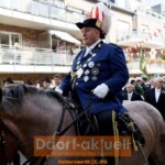 Dabei führt der Weg auf den Volmerswerther Rheindeich, auf dem die Teilnehmer des Festzug aneinander vorbeiziehen. Auch die befreundeten Gesellschaften aus Hamm und Flehe waren mit dabei. Nach der feierlichen Parade stand der Abend im Festzelt im Zeichen der Jugend. Die Jungschützen organisierten ihren Ball mit eigenem Programm, DJ und Tanz.