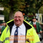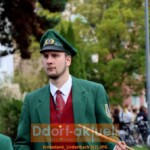 Die vielen Hundert Teilnehmenden der Erntedankgruppen hatten sich nach einem gut organisierten System in den Seitenstraßen aufgereiht. Dort wurden auch schnell noch akute Probleme gelöst – so hatte beispielsweise der Bollerwagen einer Gruppe einen Achsbruch erlitten und es wurde Ersatz gesucht – schließlich galt es, das Schumacher-Fässchen zu transportieren.