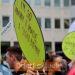 Andrea Kocsis, stellvertretende ver.di-Bundesvorsitzende, betonte in ihrer Rede auf der Bühne vor dem Landtag, dass man sich gegen die Spaltungsversuche wehre und den Rechten und Putinverstehern nicht die Straße überlassen wollte. Aber schon bei ihrer Aussage, alle Teilnehmende würden die Sanktionsmaßnahmen gegen Puten unterstützen, gab es bei einigen Kopfschütteln und Buh-Rufe. Das zeigt, wie unterschiedlich Ansichten der Gruppierungen und Organisationen sind, die von Gewerkschaften und Parteien über Kommunisten, Klimaschützer, Atomkraftgegner bis zu internationalistischen Bündnissen, Migrantenorganisationen und Friedensinitiativen reichten.