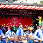 In seiner rund 30 Minuten langen Rede bekamen dann auch noch die Fortuna, das Lüpertz-Kunstwerk am Ratinger Tor, die Chinesen, Putin und die Waffenverbotszone ihr Fett weg. Während die KG Regenbogen hinter der Bühne bereits seit längerem ihrem Auftritt entgegenfieberte, setzte nun OB Keller noch zu seiner Gegenrede an. Offenbar hatte er vorher schon einen Blick auf das Hoppeditz-Manuskript werfen können, denn er parierte auf fast alle Seitenhiebe. Nachdem Keller dann Tom Bauer noch an seinem Senftopf abgeholt hatte und die Fotosession erledigt war, konnte endlich das Bühnenprogramm starten, auf das viele bereits gewartet hatten.