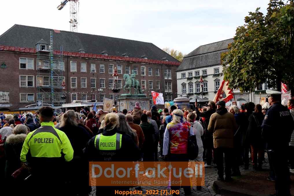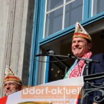 Der Marktplatz vor dem Düsseldorfer Rathaus füllte sich bis 11 Uhr am Freitagmittag (11.11.) mit den Abordnungen der Karnevalsvereine, den Garden und vielen Jecken. Alle erwarteten sehnsüchtig das Erwachen des Hoppeditz und damit den Start in die fünfte Jahreszeit, die erneut unter dem Motto “Wir feiern das Leben” steht.