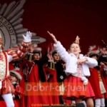Der Düsseldorfer Marktplatz war am Sonntag (12.2.) fest in „Garde-Hand“. Denn die Prinzengarde der Stadt Düsseldorf hatte zum großen Gardetreffen eingeladen und nicht nur die Düsseldorfer waren der Einladung gefolgt. Kindergarden und große Garden wurden ab 11:11 Uhr von drei berittenen Gardisten auf den Marktplatz geleitet, wo sie auf der Bühne ihre Musik und Tänze präsentierten.