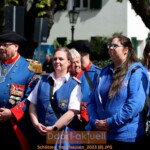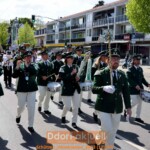 Zuerst zogen die Fahnen aller Gesellschaften mit Musik an den Zuschauer*innen vorbei. Anschließend die Schützengesellschaften in zwei Bataillonen. Nach der Schlussmeldung wurden die Ehrengäste mit Musik zum Festzelt geleitet. Dort fanden einige Ehrungen statt, bevor am Abend mit DJ Angelo Venucci, Roberta Lorenza und Torsten Sander die Tanz-in-den-Mai-Party startete.