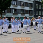 Doch das tat dem Festzug und der Parade am Sonntag keinen Abbruch. Angeführt von Tambourcorps Eller ging es mit Musik durch die Straßen. Neben den Lierenfelder Kompanien zogen auch Schützen befreundeter Vereine mit. Die Parade wurde auf der Posener Straße gehalten, anschließend zog man weiter zum Schützenplatz am Wilhelm-Heinrich-Weg. Dort hatte das Schützenfest bereits am Freitag (19.5.) mit Serenade, Gottesdienst und Zapfenstreich begonnen. DJ Ralle spielte dann zum Discoabend auf.