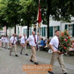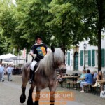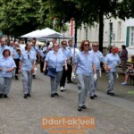 Für den Gerresheimer Spielmannszug hieß es am Sonntag früh aufstehen, denn bereits ab 6:30 Uhr war Wecken angesagt. Anschließend bereiteten sich alle auf den großen Festumzug vor. Bei heißen Temperaturen zogen die Schützen und Schützinnen unter Leitung von Oberst Horst Cönen von der Quadenhofstraße über die Benderstraße bis zum Kölner Tor. Die Majestäten genossen sichtlich die Fahrt in ihren Kutschen und auch für die Senioren der Bruderschaft standen Kutschen bereit.