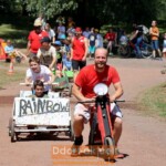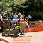 Zum Gaudi der Kinder traten auch die Betreuer in Jux-Rennen an. Dabei begeisterte besonders das Wikinger-Boot, das mit zahlreichen Personen besetzt die schwerste Seifenkiste des Tages war. Das lag allerdings auch an der Ladung, denn im Ziel wurden Süßigkeiten aus dem Boot verteilt.