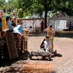 Gleich mit dem ersten Ferientag, am 22. Juni, startete das Düsseldörfchen im Südpark. In diesem Jahr stand alles unter dem Motto „Entdeckerstadt“. 275 Kinder zwischen 8 und 14 Jahren konnten an 15 Tagen in 16 Bereichen entdecken, basteln, musizieren, sich ausprobieren und dabei viel Spaß haben. Sehr angenehm war für die Kinder und die 50 Betreuer*innen, dass in den ersten Tagen das Wetter nicht so heiß war. Deshalb verzichtete man auch auf den Bau eines Pools und begnügte sich mit einer Wasserrutsche auf einem der Hügel.