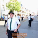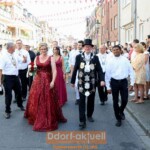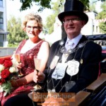 Das Regimentskönigspaar Frank Korfmacher-Zwior und Königin Daniela von der Jägerkompanie stieg noch vor dem Festzug auf alkoholfreien Sekt um. Kaplan Antony Kuruz Kilaiton Thommai hatte dem Regimentskönigspaar die Getränkewahl nahegelegt. Mit drei plus eins Bataillonen schritten die Schützen dann zur Tat. Oberbürgermeister Stephan Keller kam persönlich, um den Volmerswerthern seine Aufwartung zu machen. Zu den Ehrengästen gehörte auch die Kreisgeschäftsführerin der Arbeiterwohlfahrt, Marion Warden.