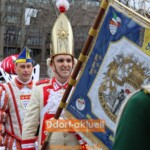 Gemeinsam erwartete man die nächsten Ehrengäste: das Kölner Dreigestirn Jungfrau Frieda, Prinz Sascha I. und Bauer Werner. Ein Treffen von Familien, denn Uwe und Melanie sind ein Ehepaar, das Dreigestirn setzt sich aus Vater Friedhelm Klupsch (Jungfrau), Sohn Sacha Klupsch (Prinz) und Onkel Werner Klupsch (Bauer) zusammen. Das Dreigestirn kommt von der KG Treuer Husar Blau-Gelb von 1925 e.V. Köln. Mit Helau und Alaaf freuten sich alle über die Gelegenheit des Austauschs auf „neutralem Boden“ in der schönsten Stadt am Rhein, wie die Kölner betonten.