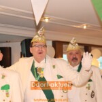 Schmunzelnd berichtete Prinz Sascha, dass sein neuer Nachbar der Neffe von Thomas Puppe sei, der seinen Einstand mit Altbier gegeben habe. Venetia Melanie erzählte von einem Treffen in Köln mit einer Garde, bei dem zu den Koteletts Düsseldorfer Löwensenf serviert wurde. Prinz Uwe bemerkte die bunten Federn seines Kollegen Sascha und erinnerte sich an seine Kürung, bei der wegen geknickter Federn nur acht an seiner Prinzenkappe steckten. Vielleicht ein Grund, dass die Kürung ungültig sei und er eine zweite Session dranhängen muss … .