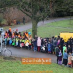 Der inklusive Veedelszoch ist besonders bei Familien mit kleinen Kindern und auch Kita-Gruppen beliebt. So säumten Hunderte den Weg von Haus Deichgraf bis zum Höfchen. Dort gab es heißen Kakao, leckere Berliner aus der Südpark-Bäckerei und Musik von der Band „Heavy Gummi“.