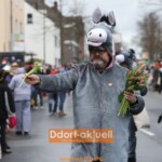 Ein Dorf im Ausnahmezustand: Mit rund 1300 Teilnehmenden stellte der Karnevalsausschuss Unterbach auch in der 68. Neuauflage des Unterbacher und Unterfeldhauser Karnevals unter Beweis: Im Eselsland können sie Karneval. Ganz eindeutig. Und das Krönchen auf einen gelungen setzte das Wetter: Musste man es sich zu Beginn des Biwaks auf dem Breidenplatz um 11.11 Uhr am Sonntag (11.2.) noch schön trinken, schloss der Himmel rechtzeitig zum Start des Sonntagsumzug in Düsseldorf Unterbach sämtliche Schleusen.