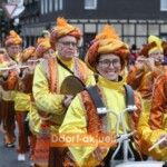 Hoch auf dem Prinzenwagen sorgten Prinz Johannes II. Und Prinzgemahl Dieter dafür, dass hunderte Strüsscher unter das närrische Volks kamen. Sehenswert war aber auch der Wagen des Unterbacher Kinderprinzenpaares Elisa I. Und Matthias I. Hier hatten sich die Erbauer bei Mickey Mouse bedient – und ein tolles Gefährt für die jungen Regenten geschaffen.
