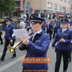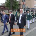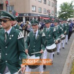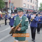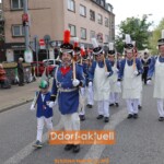 Der guten Stimmung beim Heerdter Schützenfest an einem neuen, frühen Termin tat das keinen Abbruch. Beim großen Festzug mit zwei Bataillonen und mit viel Musik trugen die Heerdter Schützen ihre Tradition einmal quer durch den langgestreckten Stadtteil. Vom Startpunkt am Handweiser bis hin zur Parade, vis-a-vis der Kraftquelle von Düsseldorf, dem Kraftwerk auf der Lausward.