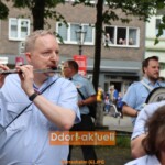 Die wurde zum ersten Mal sehr launig von Marco Schmitz moderiert und das war nicht die einzige Neuerung. Denn mit Musik, Fahnen und Blumenhörner präsentierte sich der Nachwuchs der Gerresheimer Schützen bei der Fahnenparade. Nachdem Oberst Horst Cönen Meldung gemacht hatte, zogen die drei Bataillone, die um befreunde Schützen verstärkt wurden, an Majestäten, Vorstand, Ehrengästen und viele Zuschauer*innen vorbei.