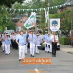 Doch nicht das ganze Schützenfest war verregnet. Denn begonnen hatte die Bruderschaft bereits am Donnerstag mit dem Gottesdienst. Der Nachmittag stand dann ganz im Zeichen der Kinder und Jugend und es zeigte sich, dass das Festzelt auch für eine Bobbycar-Rennstrecke taugt. Das Jahresmotto „Neue Wege erschließen“ hatten die Schützen bereits im Frühjahr gestartet und die Schüler*innen der Franz-Vaahsen Grundschule gebeten Bilder von Kirmes und Schützenfest zu zeichnen. Die vier schönsten zierten das große Banner am Ortseingang, dass alle Bürger*innen zum Mitfeiern einlud.