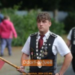 „Der Weg zu diesem Fest war mit einigen Schwierigkeiten verbunden. Für unsere Bruderschaft wird es immer schwieriger, ein Volksfest auf die Beine zu stellen und die Risiken genau abzuwägen“, schreibt der aktuelle Regimentskönig, Diakon Michael Inden, im Festheft. Es gab viel Hilfe aus benachbarten Schützenvereinen – beim Umzug waren Schützen aus Hilden, Unterbach, Hassels, Eller, Wersten und Benrath vertreten. Mit einer Fahnenschwenker Einlage von Uwe Frank und Justin Hau, der Fahnenparade und dem Vorbeimarsch eines Bataillons an den Ehrengästen erlebte die St. Augustinus Schützenbruderschaft nach einer schwierigen Phase in den zurückliegenden Jahren wieder ein Stück Sommerbrauchtum, das in dem Quartier von ganzem Herzen getragen wird.