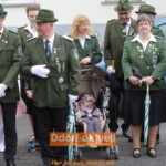 Gut beschirmt wurden der Regimentskönig der St. Augustinus Schützenbruderschaft, Michael Innen (2.v.r.) und Schülerprinzessin Angelina Hau bei der Parade In der Alb. Vom Himmel fielen dabei ein paar Regentropfen.