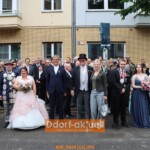 Bei weiteren Wetterkapriolen waren am Montagnachmittag die Senior*innen aus Bilker zu Kaffee, Kuchen und Programm eingeladen. Anschließend ging es auf dem Schießstand in die erste Runde des Schießens auf den Königsvogel. Erst am Dienstagabend (18.6.) konnten die Bilker Schützen ihren neuen König bejubeln – und diesmal war es eine Regimentskönigin. Erst seit zwei Jahren dürfen auch Frauen in Bilk Mitgleid werden. Sarah Walterbach aus der Germania Kompanie zeigte sich zielsicher und wird erste Königin des Regiments, an ihrer Seite ihr Ehemann Dominik. Am frühen Abend wurde sie mit viel Musik und Zapfenstreich proklamiert. Das Feuerwerk fiel dem Wetter zum Opfer. Die feierliche Krönung findet traditionell erst im Herbst statt.