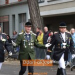 Majestäten und Ehrengäste eilten zur Benzenbergstraße. Zu diesem Zeitpunkt waren die Pferde und Kutschen bereits verladen. Daher ging es für den Axel Uebels, Ehrenoberst Michael Kohn und Achim Welter zu Fuss zur Meldung. Der guten Laune tat es keinen Abbruch und auch als wenig später der Regen einsetzte, fanden sich zahlreiche „Schirmherren“, damit nicht alle nass wurden.