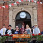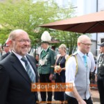 Vor zahlreichen Zuschauer*innen stellten sich die Schützen vor dem Rathaus auf und Vorstand, Majestäten und Ehrengäste gingen die Reihen ab