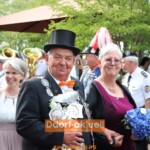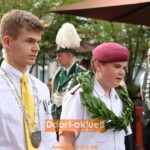Der Samstag stand dann ganz im Zeichen der amtierenden Majestäten. Das Königssilber trägt in diesem Jahr erneut den Namen Gotzes. Denn Peter Gotzes und seine Frau Petra lösten ihren Sohn Sebastian ab, der im vergangenen Jahr König war. Und ganz zur Freude des Königspaars komplettierte Enkel Maximilian als Kleinschützenkönig das Bild. Mit strahlendem Lächeln nahmen auch das Kronprinzenpaar David Kann mit Caroline Riedewald an seiner Seite die Parade zu ihren Ehren ab. Komplettiert wurde die Reihe der Majestäten von Schülerprinz David Stracke.
