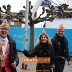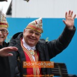Die vielen Karnevalisten staunten nicht schlecht, denn da kam niemand mit Narrenkappe aus dem Topf. Stattdessen hatte Tom Bauer den blonden Trump-Schopf angelegt und grüßte die „Krauts“. Doch mit Helau, Traditionskappe und Glückwünschen zum 200. Geburtstag des Düsseldorf Karnevals ging es weiter. Eine endlose Geschichte ist das Thema Gaslaternen, die auch bei dieser Hoppeditzrede nicht fehlen durften. Und natürlich die Oper, bei der der Hoppeditz eine klare Meinung vertrat: „wär das nicht besser wir nutzen die Kohle für ach so viel Sachen, den Vielen zum Wohle, als uns für die paar Don Giovannis im Leben uns selbst die Götterdämm‘rung zu geben“. Über die Ampel in Berlin flog Tom Bauer die Kurve bezog klar Stellung gegen Rechts: „sie malen schwarz, wie die Nazi-Schweine von 33 – bloß Lösungen haben sie keine“. Bürgermeister Hinkel bekam sein Fett weg ebenso wie Schützenchef Stieber, dem die Amtskette geklaut worden war. Eine herrlich freche Rede, auf die Stephan Keller prompt reagierte.