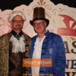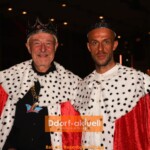 Schon beim Betreten des Saals war der royale Glanz zu spüren. Die runden Tische waren wunderschön in rot mit Kerzenleuchtern eingedeckt. Passende Bierdeckel und Stoffservietten lagen an jedem Platz und je ein Goldtaler, mit dem die Gäste über das schönste Kostüm abstimmen konnten. Da fiel die Wahl schwer, denn alle hatten sich in royale Schale geworfen: barocke Kleider, lange Schleppen, komplett mit Pailletten bestickte Cuts, überall waren Kronen zu sehen. Prinz Andreas hatte mit seinem Ornat gleich das passende Outfit und Venetia Evelyn trug ein sehenswertes Regenbogen-Ballkleid.