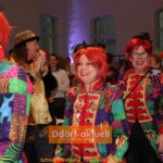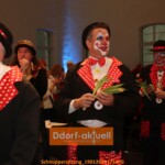 Als Thomas Puppe dann die Gäste aufforderte, sich mit Taschentüchern und Servietten auszustatten, war schnell klar, das Prinzenpaar der Landeshauptstadt zog mit Adjutantur ein. Prinz Andreas schaute erst interessiert auf das Hähnchen-Kostüm des Präsidenten und dann auf den Elferrat. Spontan beschloss er sein Prinzen-Dress an diesem Abend aufzupeppen und ließ sich eine rote Nase anmalen. Die Herzen des Publikums eroberte das Prinzenpaar im Sturm und beim Sessionslied „Düsseldorf Helau“ unterstützten alle sangesfreudig. Die KakaJu überreichte traditionell den Scheck über 1111 Euro für den Ambulanten Kinder- und Jugendhospizdienst und den Förderverein der Clara-Schumann-Musikschule, den beiden Spendenzwecken der Tollitäten. Schmunzeln erklärte Puppe, es sei bei jeder der sieben KakaJu-Veranstaltungen der selbe Scheck – überwiesen würde aber nur einmal.